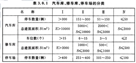 汽車庫、修車庫、停車庫類別是根據停車(車位)數量和總建筑面積確定的,分為Ⅰ類、Ⅱ類、Ⅲ類、Ⅳ類等四類。